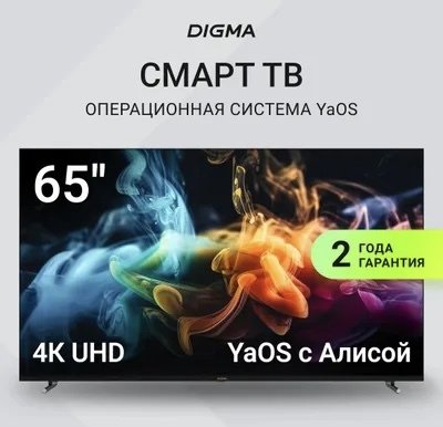 65" Телевизор Digma DM-LED65UBB33 4K Ultra HD, черный, СМАРТ ТВ, YaOS