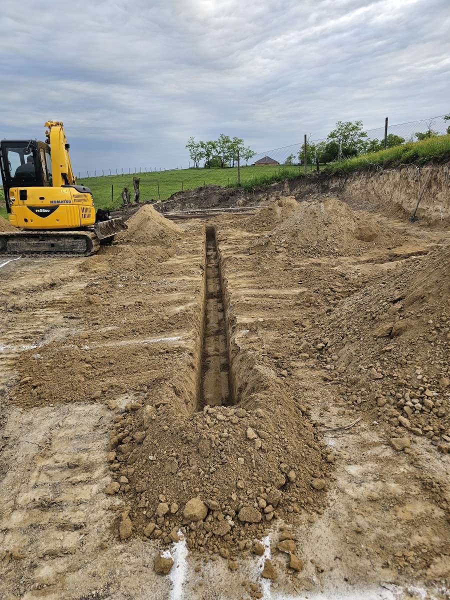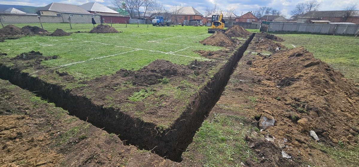 Вид работ: 🚜копка траншей под ленточный фундамент;